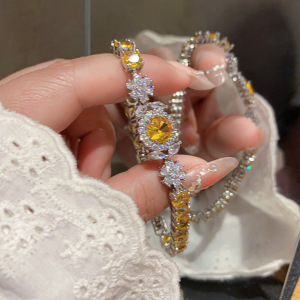 スーパーフラッシュジルコンラウンドフラワーブレスレットライト高級ハイエンドブレスレットカラフルなドーパミン絶妙なファッションブレスレット卸売