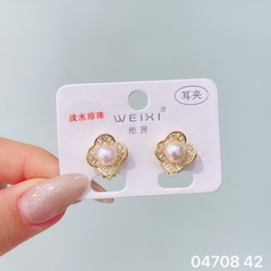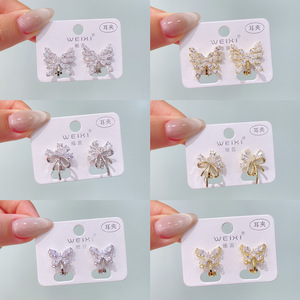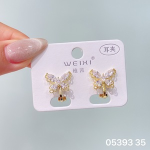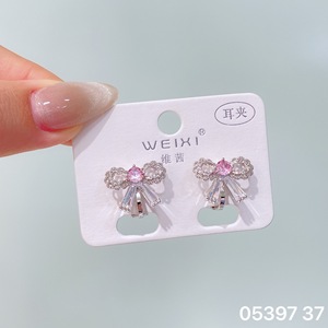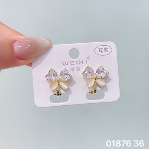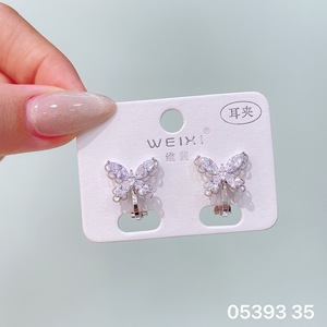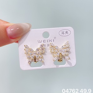 维茜新品精美闪耀锆石珍珠蝴蝶蝴蝶结耳夹女气质优雅免耳洞耳夹耳