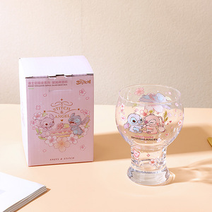 史迪仔卡通玻璃杯子ins风高颜值透明喝水杯新款玻璃杯家用冷饮杯