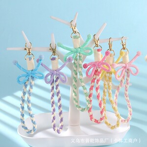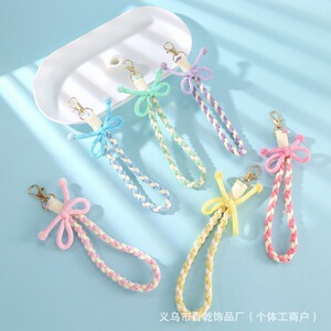 新款条纹蝴蝶结钥匙扣挂绳女孩百搭包包糖果色纯手工编织手腕挂绳