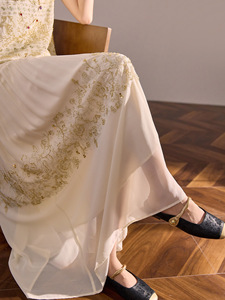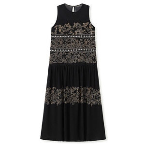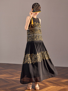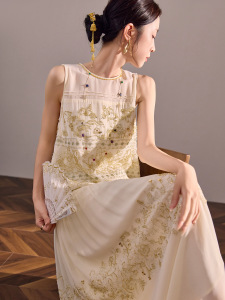 国风夏季高端时尚重工钉珠刺绣长裙新中式气质无袖连衣裙女N5050B