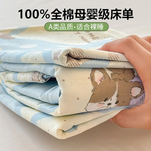 100%全棉纯棉印花床单卡通花卉单品小清新家用被单A类母婴级