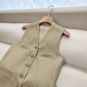 2025 夏の新スタイルラペルシングルブレストデザインスーツ V ネックシングルブレストノースリーブベストトップハイウエストパンツ