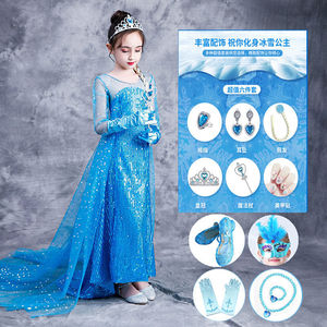 冰雪儿童公主裙奇缘爱沙女王女童连衣裙春夏款艾莎爱莎纱拖尾礼服