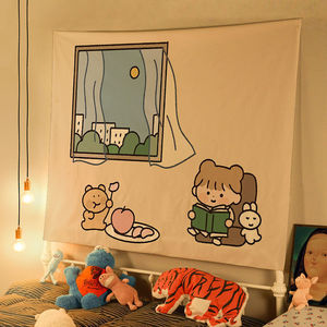 ins风可爱拍照直播床头挂布背景布宿舍卧室装饰布房屋改造挂毯批