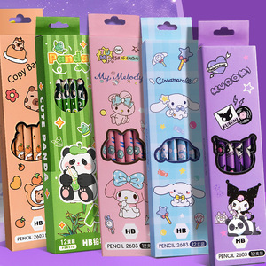 卡通12支盒装木铅笔新款可爱书写圆形写字笔小学生学习用品库洛米