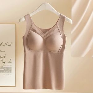 厂家直销跨境爆款秋冬保暖背心文胸一体式加厚大码网纱打底内衣女