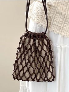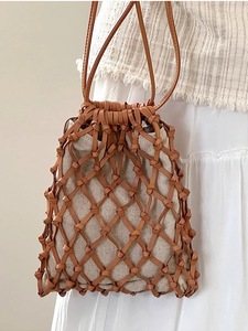 夏の新しいスタイルの中空バケットバッグ女性のクロスボーダー多用途手織り携帯電話バッグミニショルダークロスボディ小さなバッグ