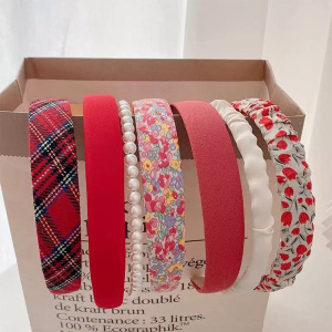 7件套5件套春夏新款珍珠发箍百搭洗脸头箍发饰褶皱布艺发箍套装头