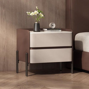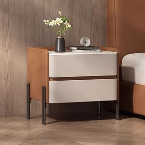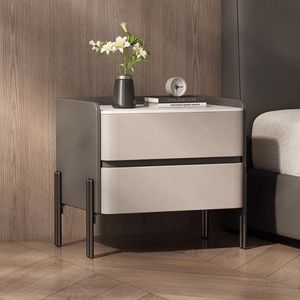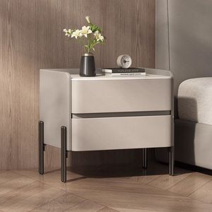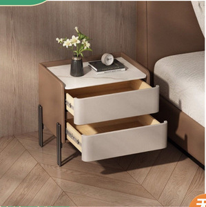 实木轻奢意式床头柜简约现代卧室家用高级岩板收纳新款床边柜整装