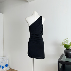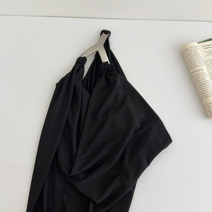 黑有染 Miekevv 瞒天过海 黑色挂脖吊带连衣裙不规则高腰包臀短裙