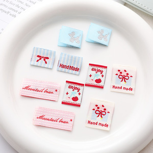 糖果色可爱小狗布标卡通条纹蝴蝶结织唛樱桃图案娃衣发圈手账标签
