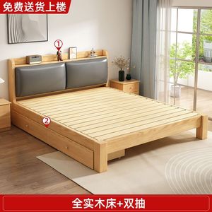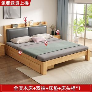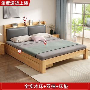 实木床双人床现代简约1.5米床家用主卧1.8m储出租屋用1米单人床架