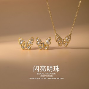 光沢のある真珠の銅のイヤリングとネックレスセット蝶色褪せない女性の軽い高級ハイエンドの国境を越えた卸売ジュエリー