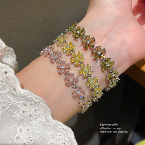スーパーフラッシュジルコンフラワーブレスレット、ライトラグジュアリー、ハイエンドブレスレット、韓国スタイル、絶妙、ファッショナブル、シンプル、多用途の女性用ハンドアクセサリー卸売