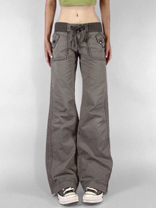 アメリカンレトロストリートホットガール多用途ローウエストストレートパンツファッショナブルなシンプルなワークウェアスタイルアウトドアストラップジーンズ