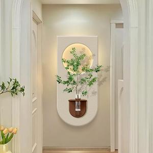 入户玄关水培绿植装饰画diy立体壁画砂岩肌理感挂画走廊过道壁灯