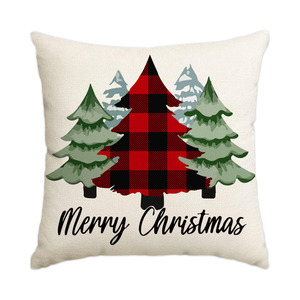 亚马逊热款圣诞主题抱枕套圣诞雪人印花亚麻枕套高颜值汽车靠枕套