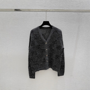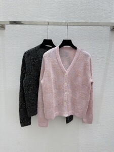 深圳南油正确高版本BC家25早秋新款丝光格纹V领长袖针织开衫上衣