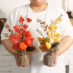 クリエイティブ装飾品カボチャ盆栽模擬花収穫祭ハロウィンクリスマススタイル装飾フラワーアレンジメントアクセサリーカエデの葉