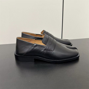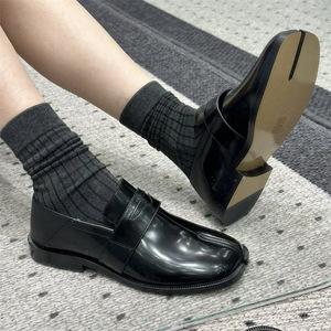 M6马吉拉小众tabi分趾乐福鞋女高版可后踩一脚蹬猪蹄粗跟低帮皮鞋