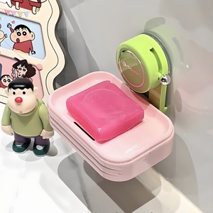 ドーパミン吸盤石鹸箱壁掛け家庭用浴室トイレ排水二層石鹸ホルダーパンチフリーソープボックス