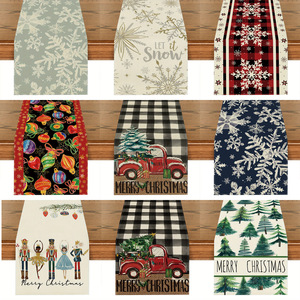 国境を越えた人気のクリスマスリネンプリントテーブルフラッグ西洋レストランテーブルクロス北欧テーブルクリスマス雪だるまテーブルフラッグ