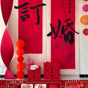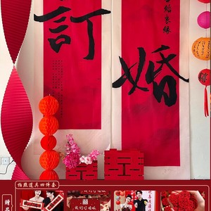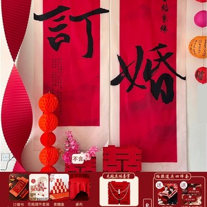 婚約吊り下げ布バナー、新しい中国風の婚約宴会の装飾、雰囲気、高級感、婚約テーブル装飾の完全なセット