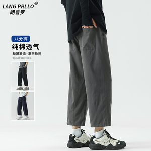 美式工装八分裤子男款2025夏季薄款宽松直筒九分裤潮牌运动休闲裤