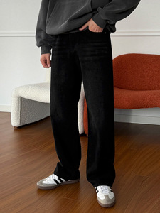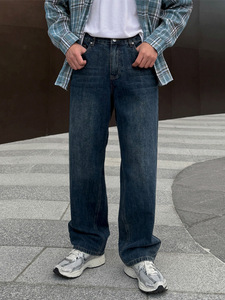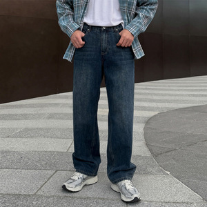 MYQ レトロウォッシュストレートジーンズメンズ春秋クリーンフィット韓国通勤スタイルワイドレッグパンツ