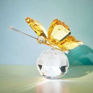 跨境刻面球蝴蝶纪念品小礼物摆件创意家居柜台装饰黄水晶玻璃蝴蝶