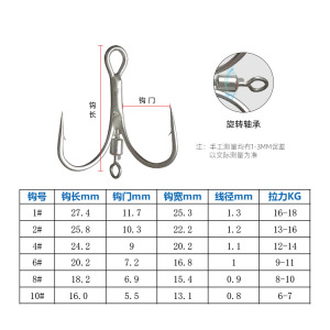 德信fishhook鱼钩高碳钢加强8字环三本钩锚钩海钓淡水改造钩户外