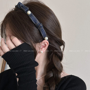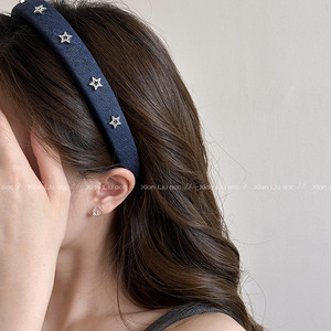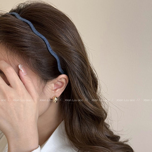 高级感蓝色牛仔宽边发箍简约港风压发头箍女2025新款洗脸发卡头饰