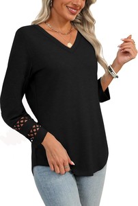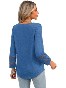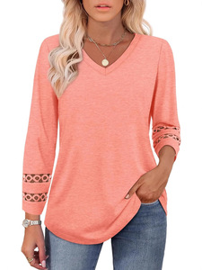 ヨーロッパとアメリカのクロスボーダーAmazon貿易2025秋冬新作ファッションVネックTシャツ長袖レディースファッションカジュアルシャツ