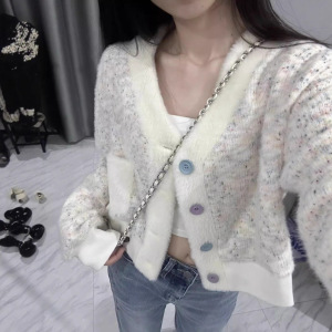 女性のための V ネックショートセータージャケット秋 2025 新しいデザイン甘い年齢を減らす気質長袖ニットカーディガン