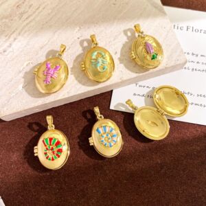 XL4643蝎子金色浅蓝相片夹吊坠可打开