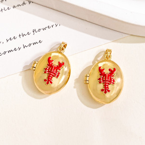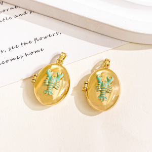 XL4651龙虾金色浅蓝相片夹吊坠可打开