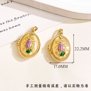 XL4649昆虫金色浅蓝相片夹吊坠可打开