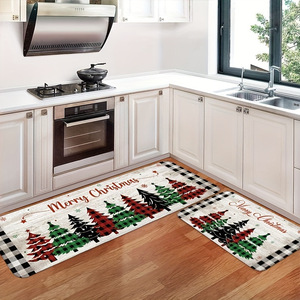 跨境热销temu亚马逊圣诞老人装饰厨房地垫套装耐脏防尘耐磨垫现货
