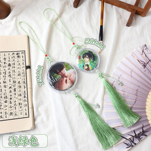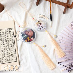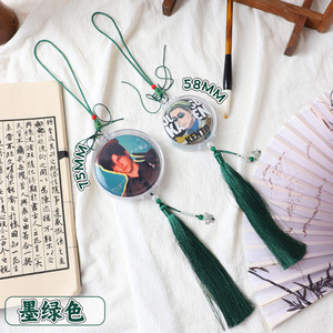 古风圆形吧唧流苏玉佩盒58mm75mm徽章透明外带收纳展示挂件亚克力