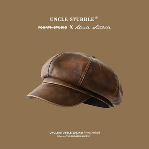 レトロな英国スタイルのレザーキャスケットハット、メンズ秋冬韓国ファッション多用途八角形ハット、日本ファッションペインターハット、レディース