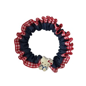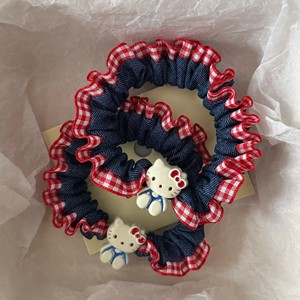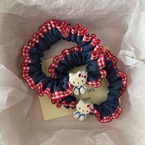 かわいい全身猫赤いレースデニムブルー小腸リングヘアリング和菓子ガールポニーテールヘアロープ
