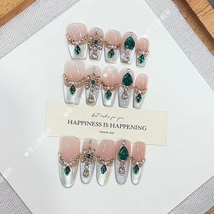 黛月达 纯手工穿戴甲夏季新款凡尔赛宫香槟锆石钻气质猫眼美甲贴