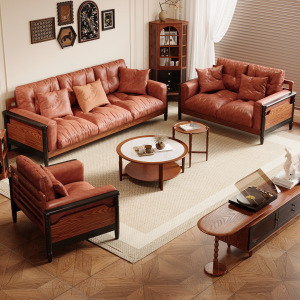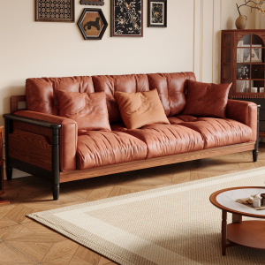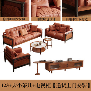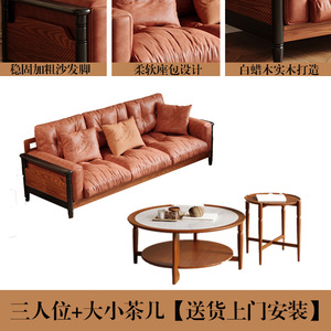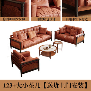 2025新款中古风三四人位直排全实木沙发小户型客厅转角布艺沙发