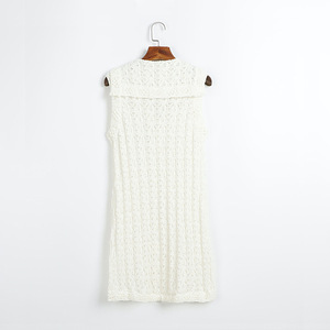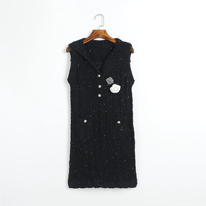 ネイビースタイルノースリーブフード付きニットスカート在庫卸売夏の椿ブローチボタン付きミドル丈ベストスカート