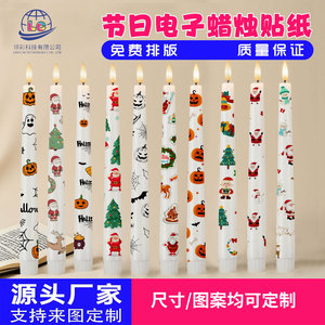 跨境热销圣诞节万圣节LED电子杆蜡水转印花纸长杆塑胶蜡烛水贴纸