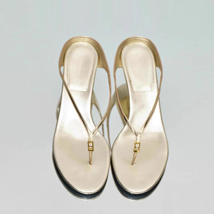 现货~外穿复古夹趾细带坡跟凉鞋25年夏季新款厚底真皮人字拖女