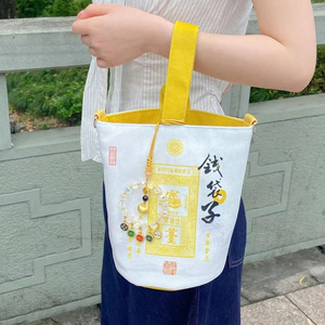 东魅兜有钱黄色款2025夏季景区新款国风原创设计帆布包一件代发