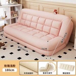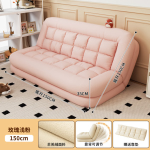 双人小沙发[展开150CM*130CM]亲肤羊羔绒面料-玫粉[赠送靠垫]