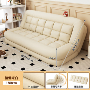 双人小床[展开180CM*130CM]亲肤天鹅绒面料-米白【赠送靠垫】